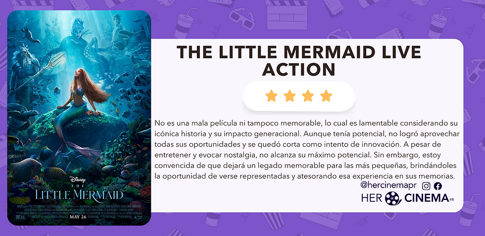 Hoy les traigo mi reseña de "The Little Mermaid Live Action", una película que ha estado en boca de todos durante el último año y un poco más. Como saben, la versión original lanzada en 1989 dejó una huella en nuestra infancia, pero creo firmemente que este live action merece ser reconocido como una nueva creación. La película se estrenará en las salas de cine el 25 de mayo y tiene una duración de 3 horas, mucho más larga que el filme original que apenas duraba 89 minutos.